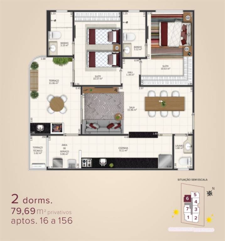 Área Útil79,36m²