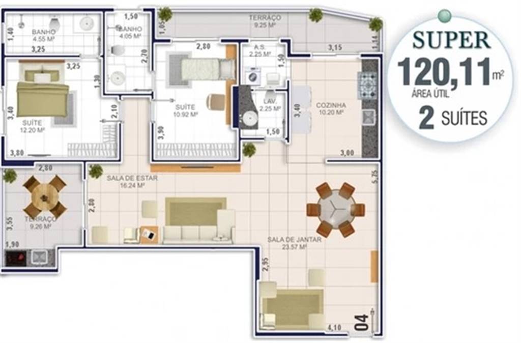Área Útil120,11m²