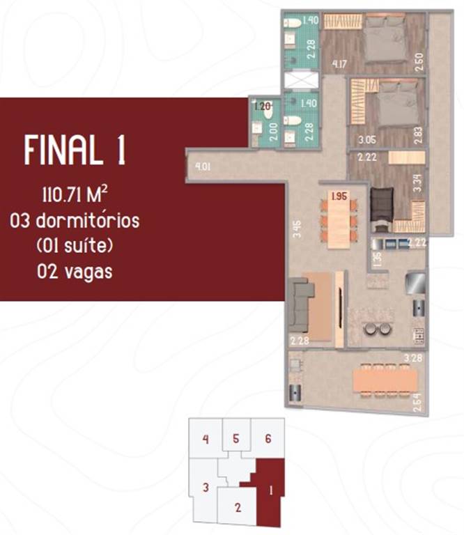 Área Útil110,70m²