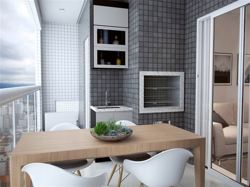 Sacadas com churrasqueira e pia