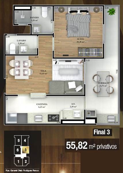 Área Útil55,82m²